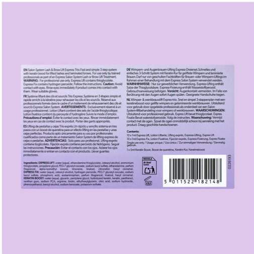 Achieve beautifully lifted lashes and perfectly laminated brows with the fast and simple 3-step Express system. Enriched with Keratin Boost, this professional treatment delivers long-lasting results with added strength, nourishment, and shine.
