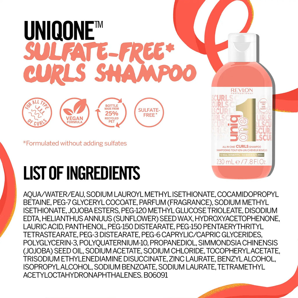 Discover the ultimate first step in your curl care routine with the UniqOne™ All-In-One Curls Shampoo. This sulfate-free*, vegan formula is specially crafted to deliver 10 real benefits every curl type needs. It gently cleanses by removing impurities and build-up while preserving hair’s natural nutritive oils, leaving curls nourished, defined, and beautifully soft.